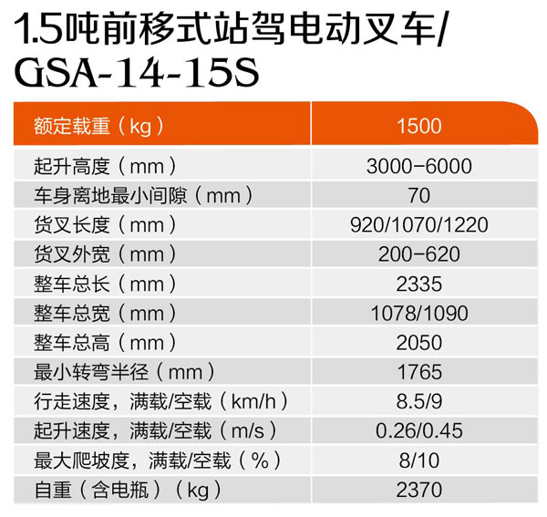 1.5噸前移式站駕電動叉車GSA-14-15S